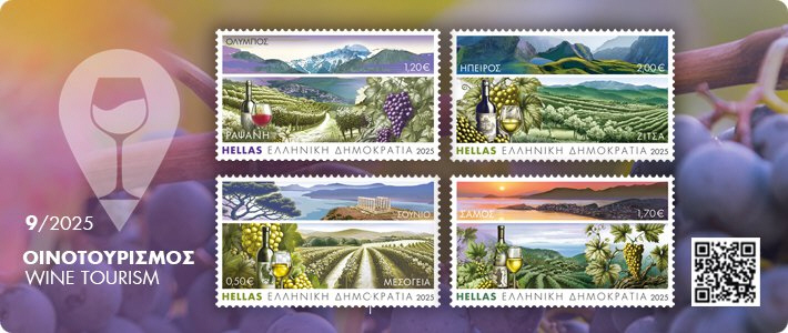2025. október 8-án megjelenik az új emlékbélyeg-sorozat, a „Borturizmus”, amely Görögország négy jellegzetes borvidékét ünnepli: Mesogeia, Rapsani, Samos és Zitsa.